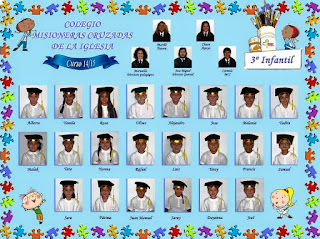 Palabras de la dirección acompañadas de un vídeo para l@s niñ@s, y unas preciosas y emotivas dedicaciones de la Tutora Mariló para sus pupilos y familiares. A continuación la entrega de Orlas y diplomas, con besos de cariño y lágrimas de verdad. L@s chiquitin@s nos deleitaron con tres canciones, a cual más bonita, y una poesía. Para acabar dos vídeos con imágenes y comentarios de los niñ@s, y sorpresa para la Tutora de parte de las familias, abanderada por las madres.