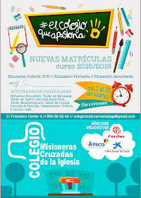 El pasado 23 de junio (noche de San Juan) el Ayuntamiento de Málaga por medio de la junta de distrinto Palma-Palmilla otorgó el premio vecinos 2015 a la "Mejor Asociación" del barrio. El premio fue entregado por el alcalde Francisco de la Torre subieron a recogerlo varios miembros de esta gran comunidad educativa (religiosas, familias, alumnos, profesores,...) Reconociendo así la labor que la Congregación Misioneras Cruzadas de la Iglesia, el colegio y el Proyecto Bajar a la Calle vienen realizando desde hace más 40 años en este barrio. Sigamos adelante construyendo un proyecto de calidez y calidad en el barrio. Agradecidos por tantas personas que hacen del Colegio Misioneras Cruzadas de la Iglesia una misión evangelizadora y social que nos apasiona.Páginas